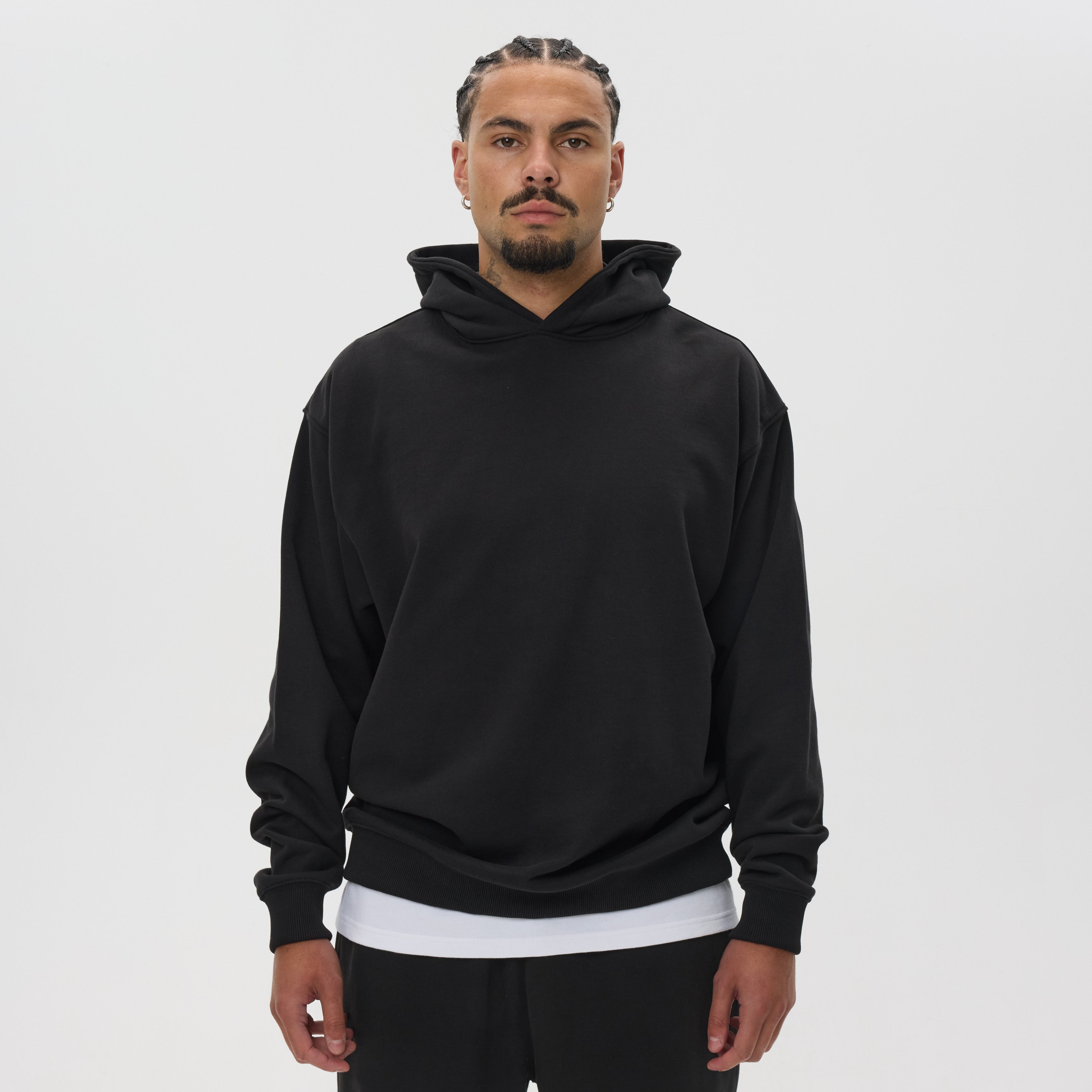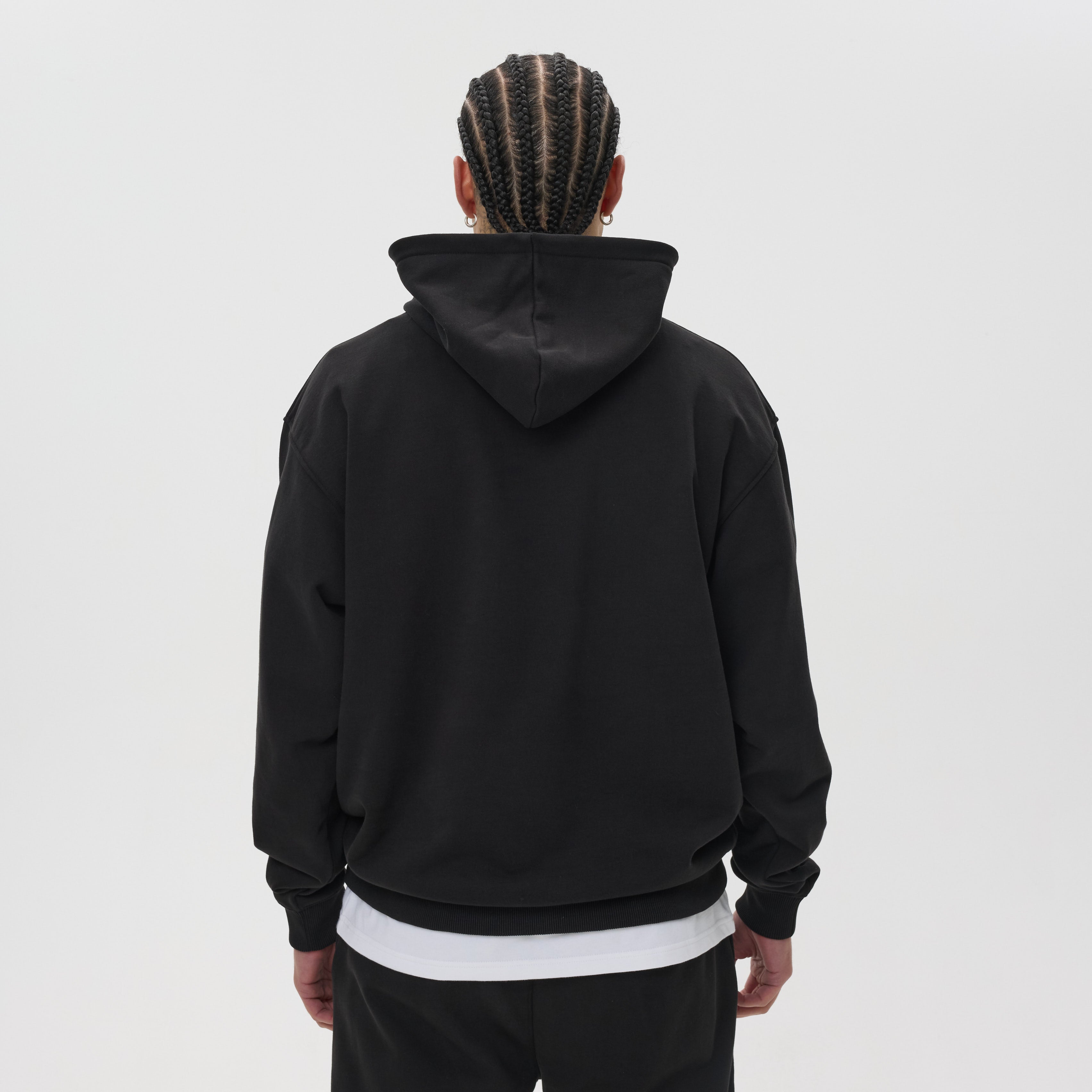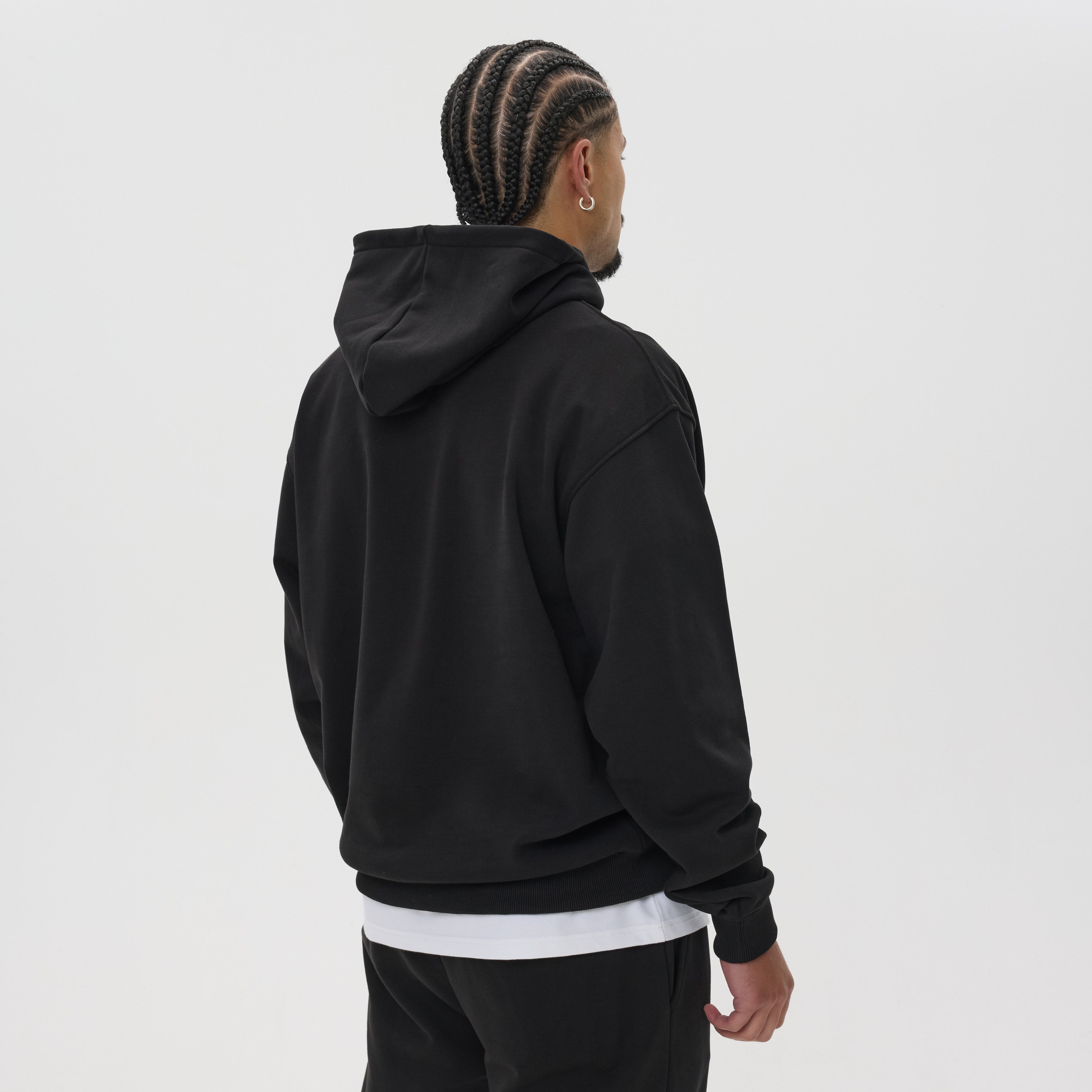 With its clean, minimalist design, this hoodie delivers timeless versatility. The hood provides warmth and coverage without adjustment cords, keeping the look simple and streamlined. Ribbed cuffs and hem add to the premium finish, making this piece an essential for modern streetwear.