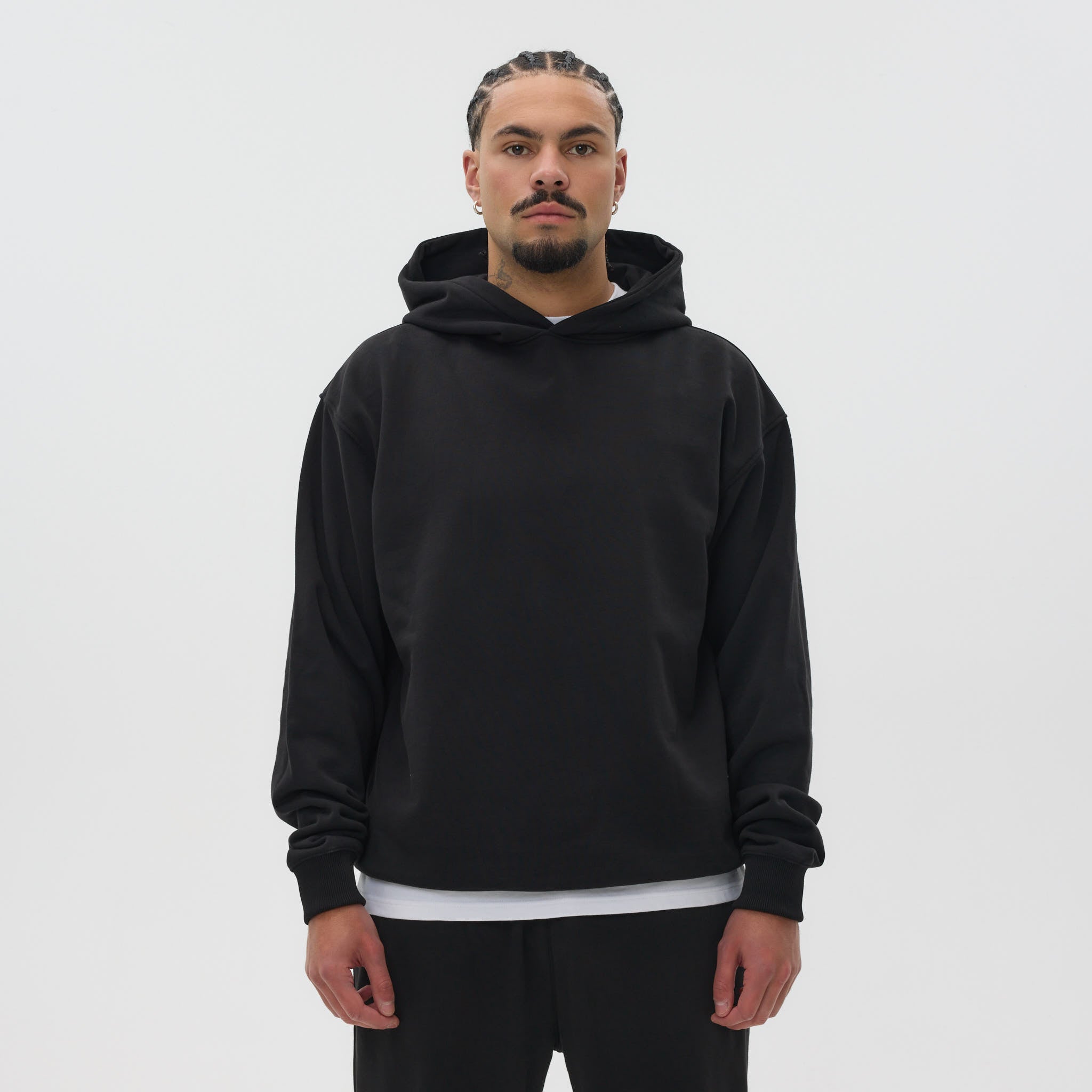 With its clean, minimalist design, this hoodie delivers timeless versatility. The hood provides warmth and coverage without adjustment cords, keeping the look simple and streamlined. Ribbed cuffs and hem add to the premium finish, making this piece an essential for modern streetwear.