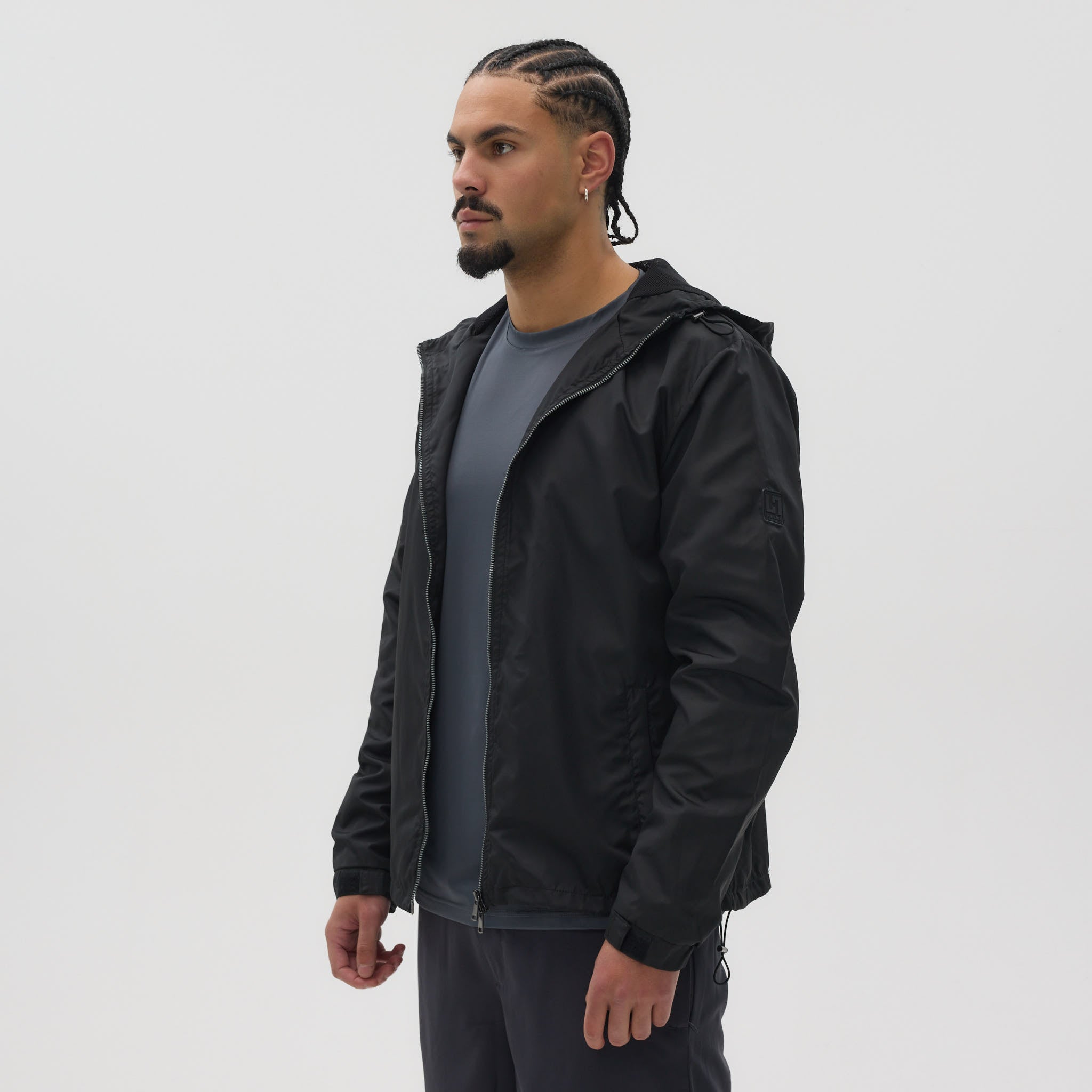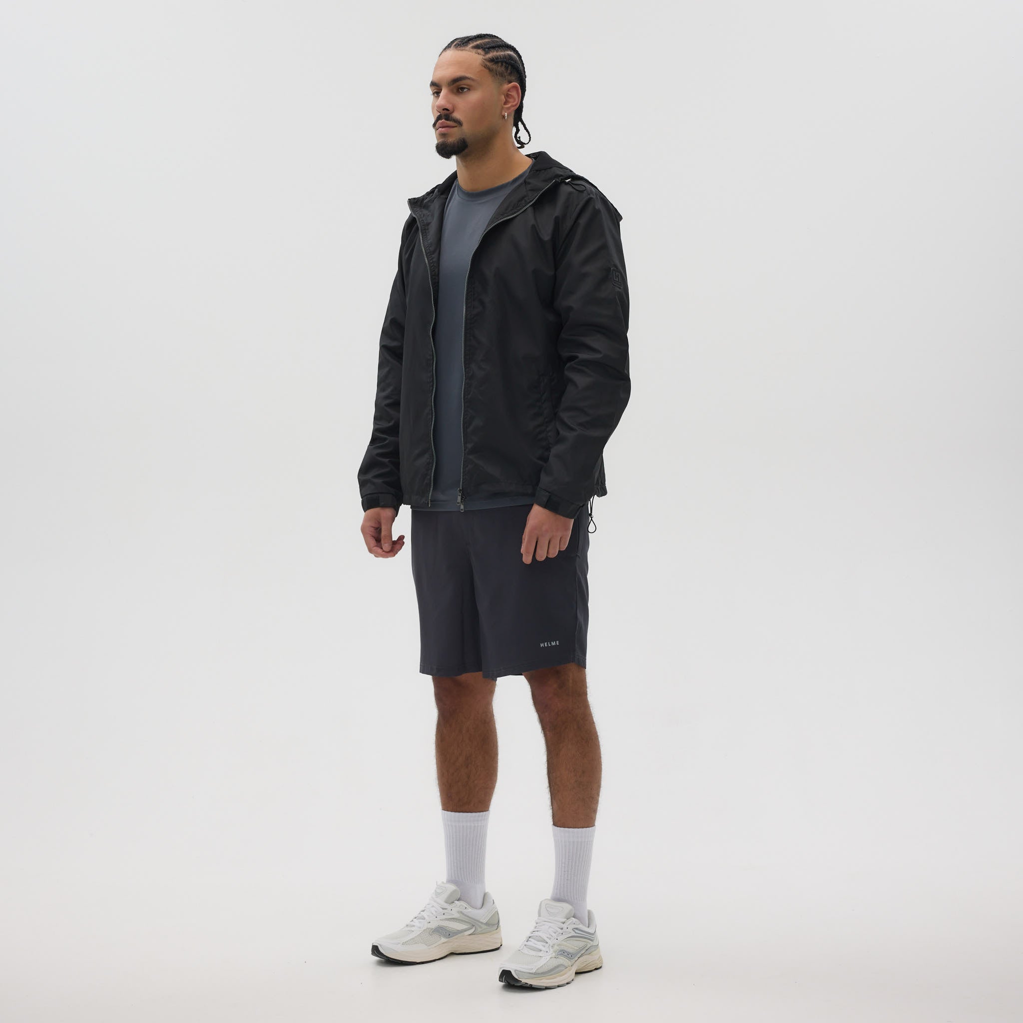 Stay ready for anything with this sleek, lightweight windbreaker. Crafted from 100% polyester, it combines comfort, durability, and modern style. Featuring a hood with breathable mesh lining, double zip closure, and adjustable bungee hem, it’s perfect for layering or outdoor adventures. Velcro-adjustable sleeves and a distinctive Helme rubber badge on the left sleeve complete the look.