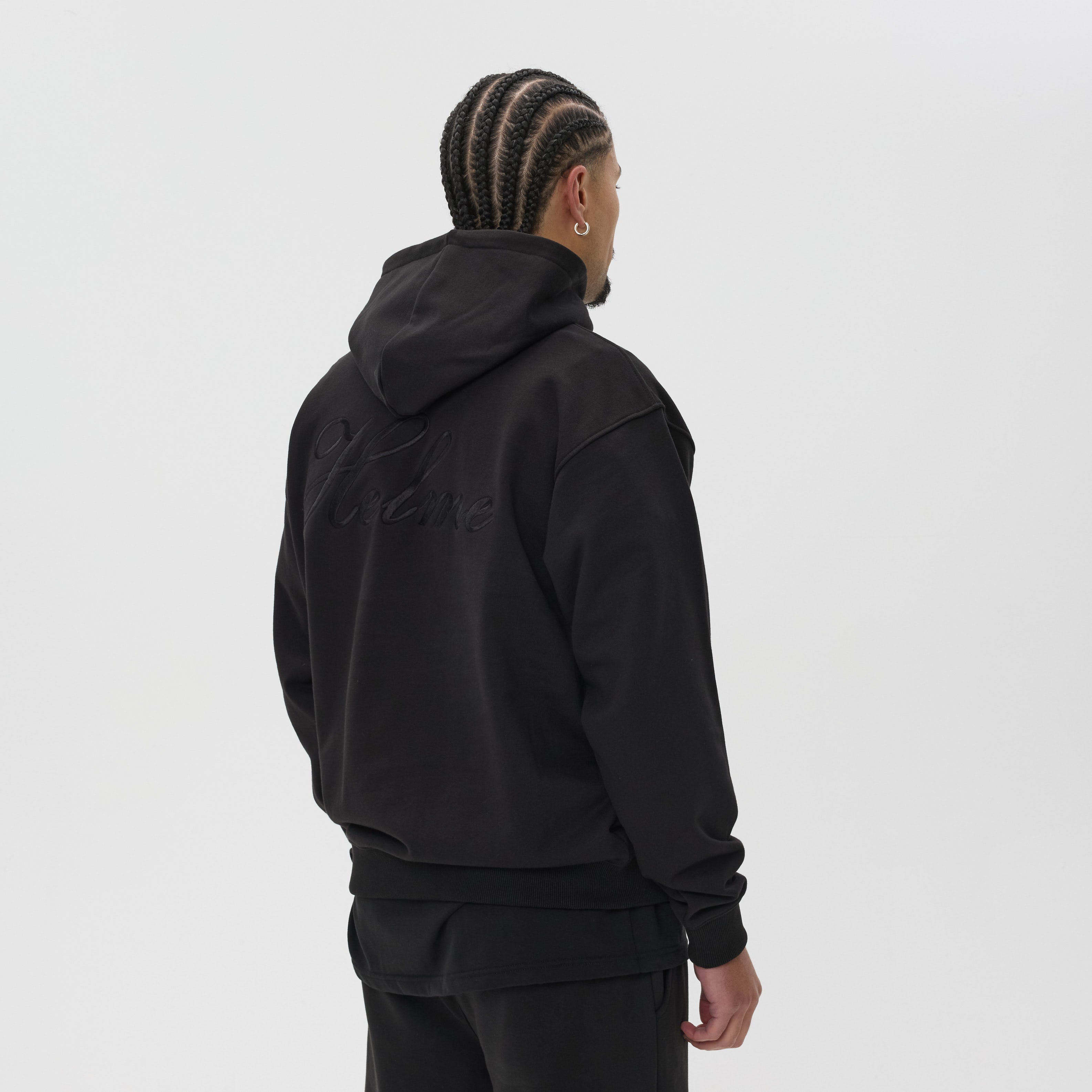 Helme Back Embroidery Signature Oversized Hoodie Black