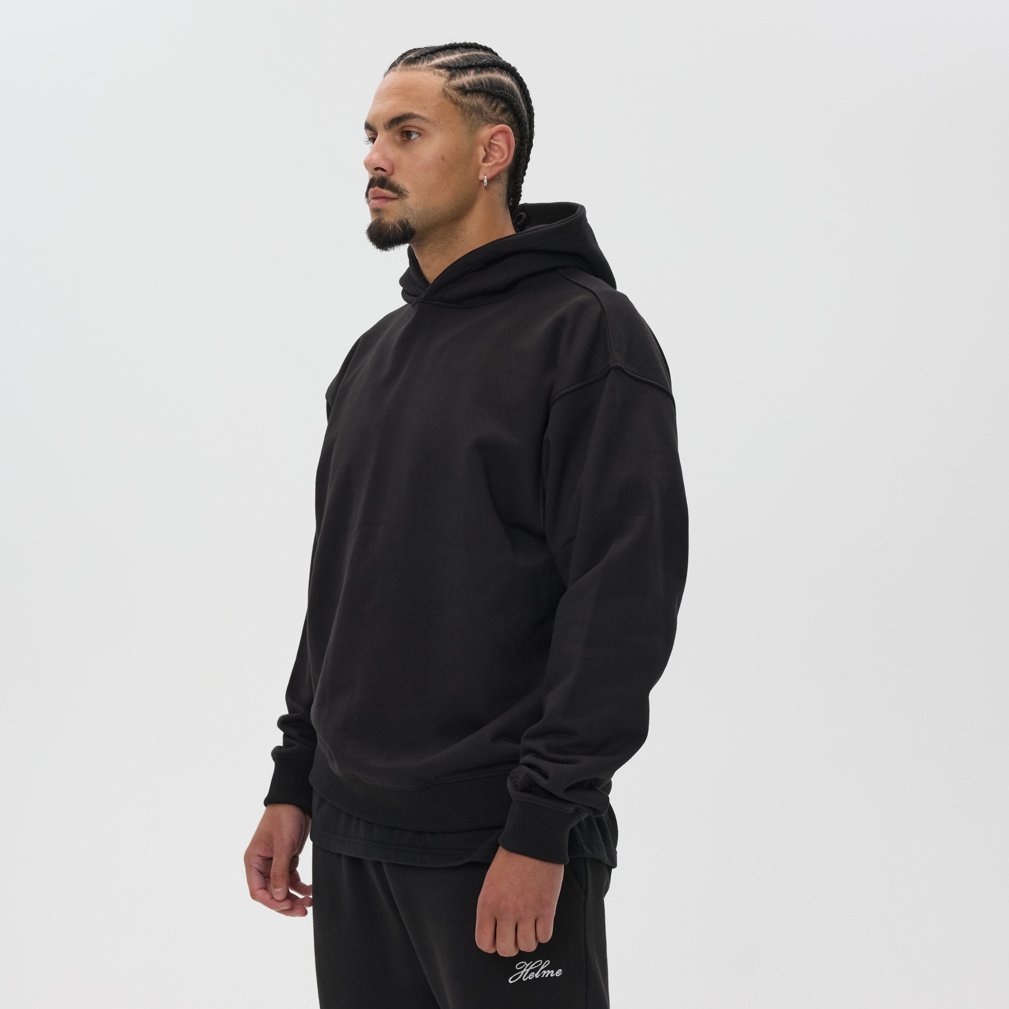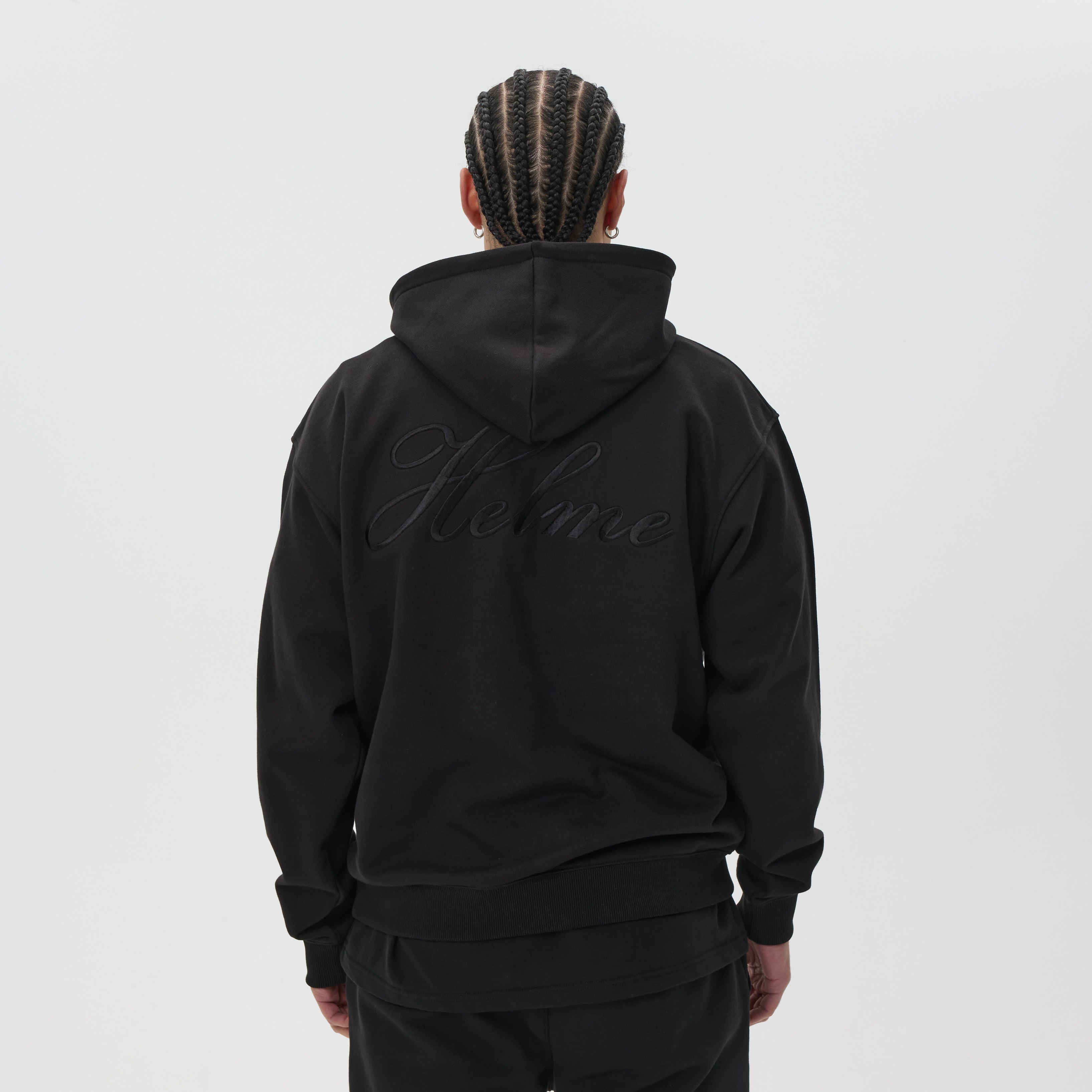 The standout detail is the large embroidered Helme logo across the back, bringing bold character to a clean, minimalist design. The hood provides warmth and coverage without adjustment cords, keeping the look modern and streamlined. Ribbed cuffs and hem add to the premium finish, making this hoodie a statement piece in any streetwear collection.