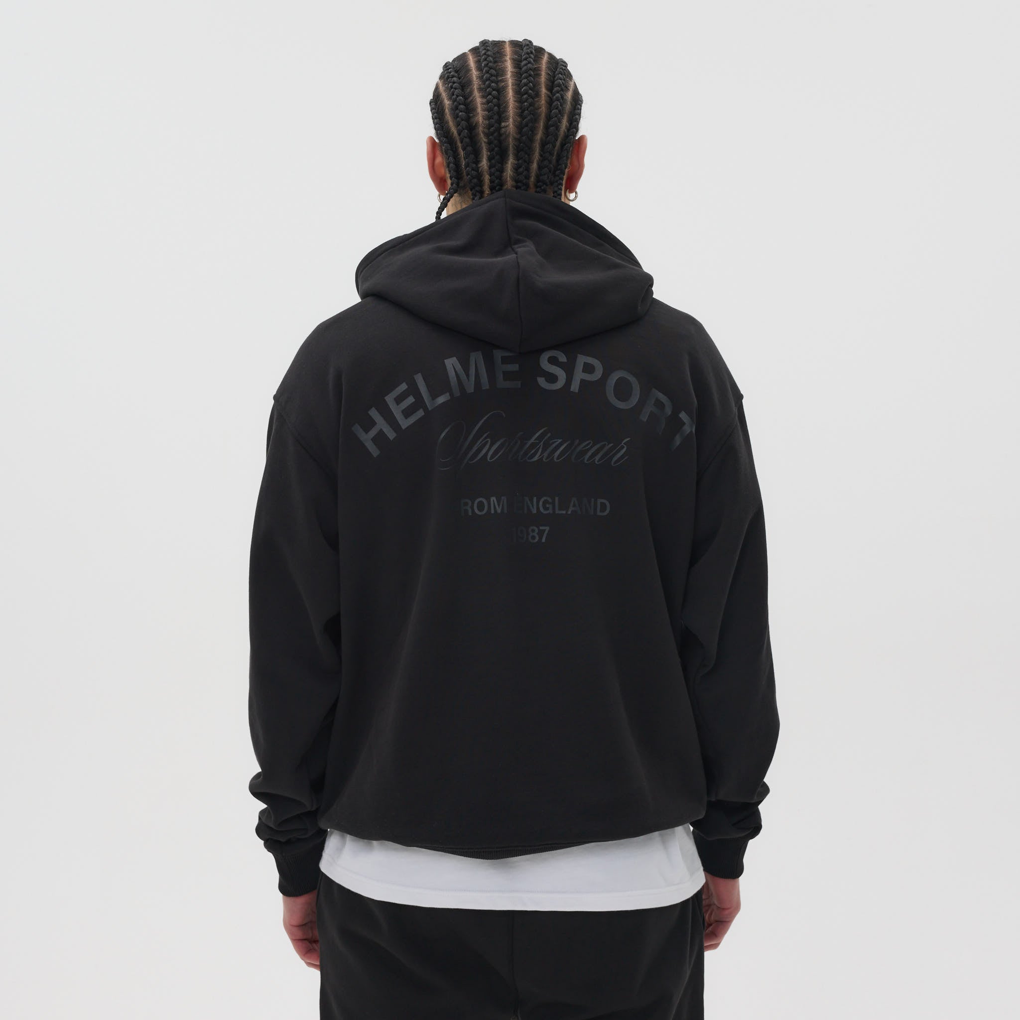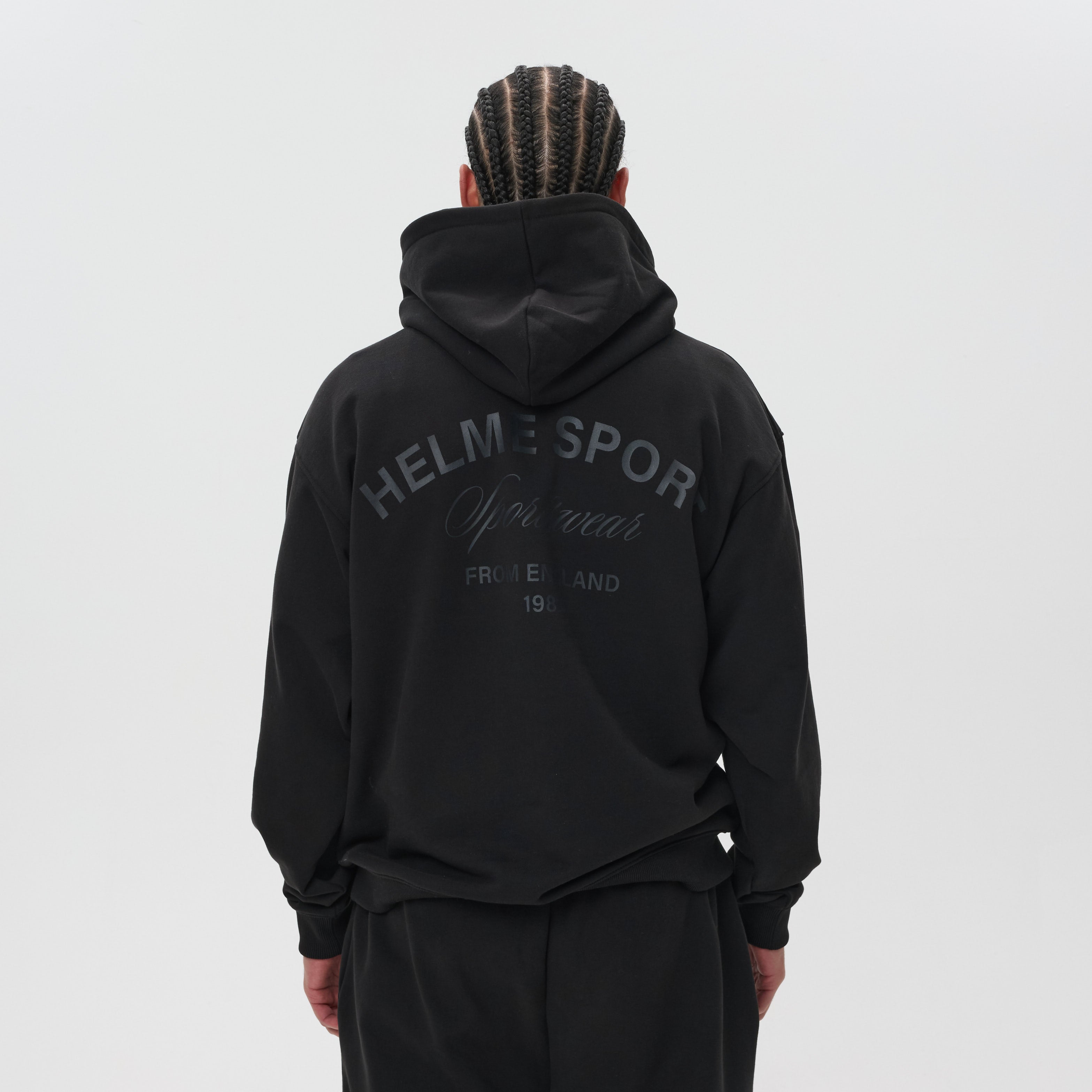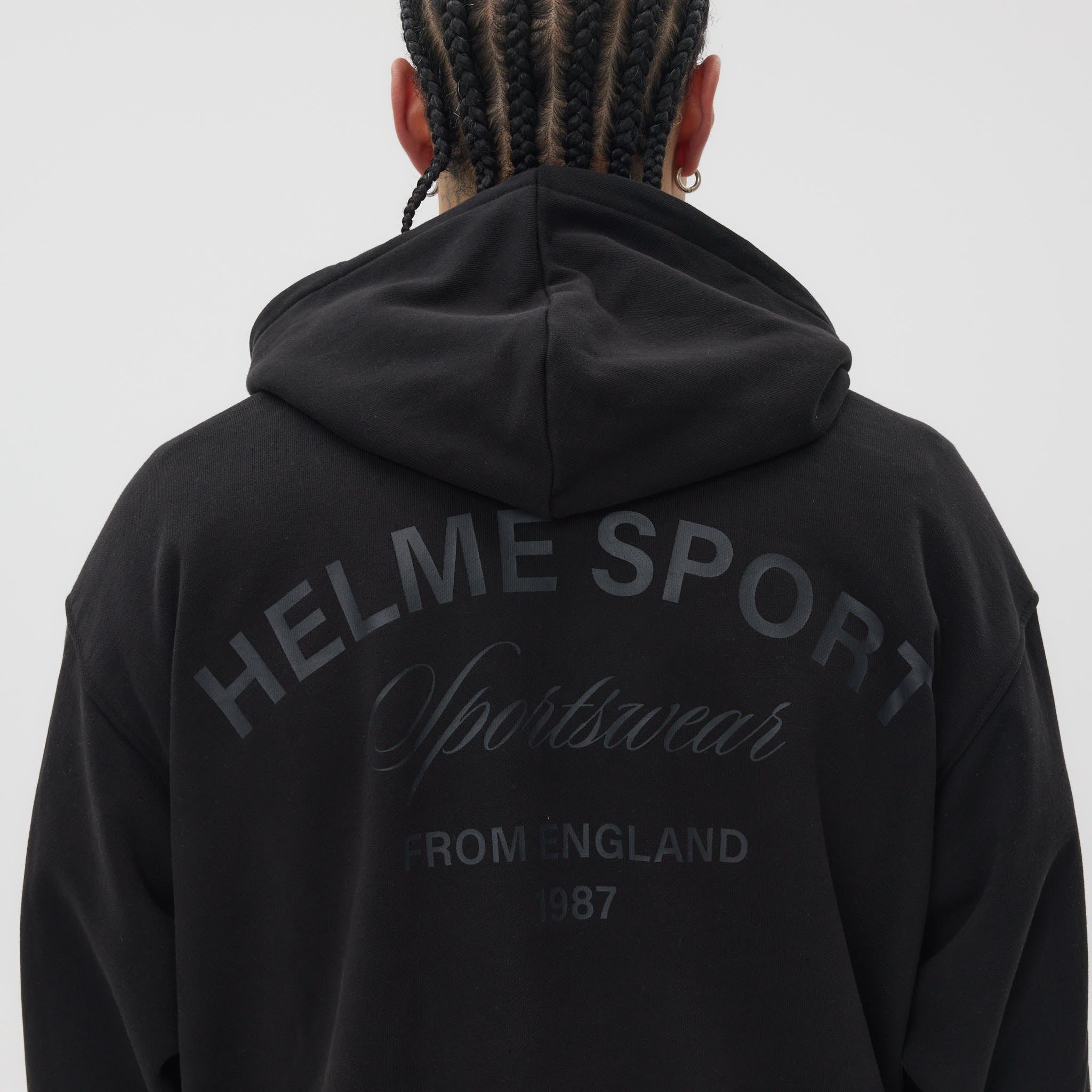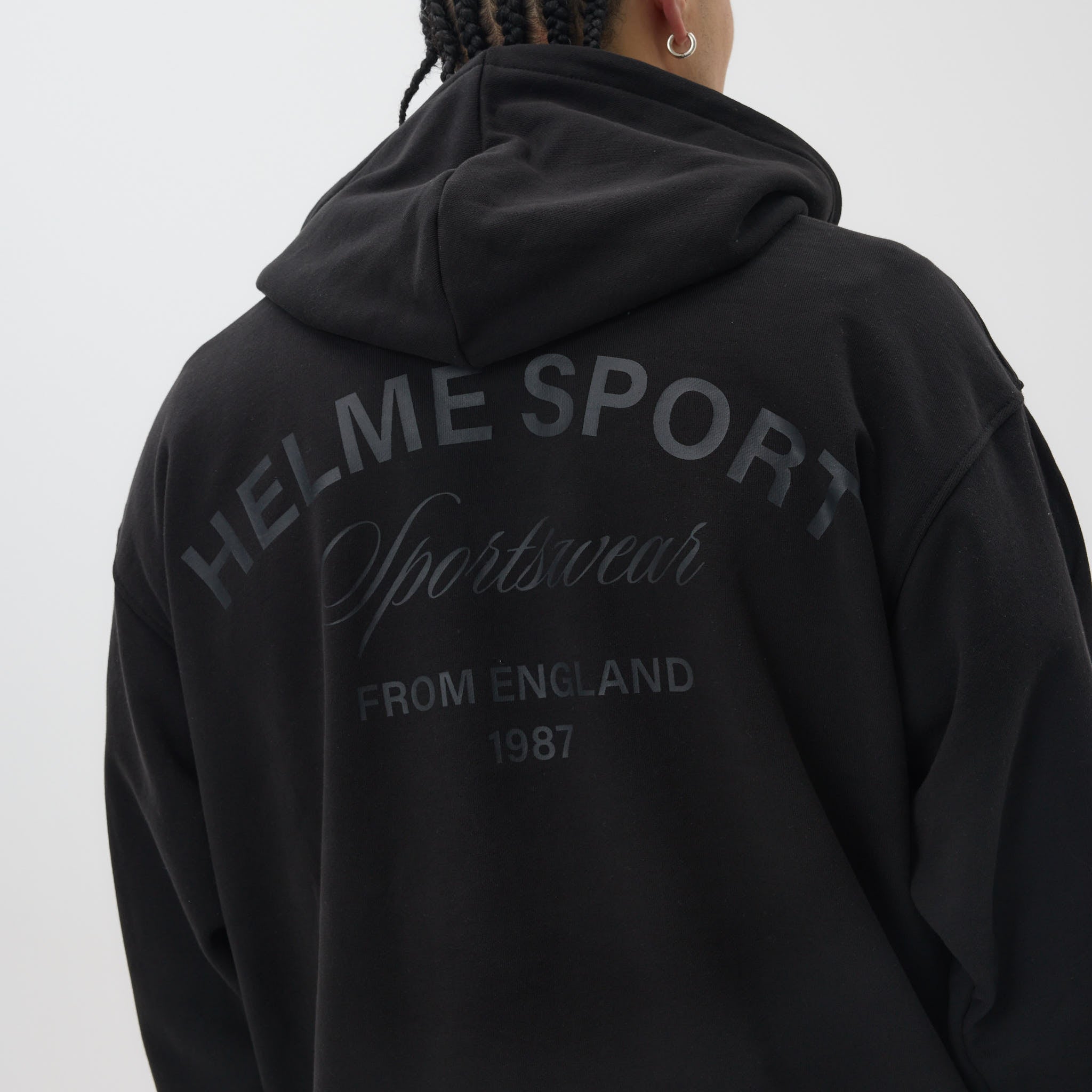 Featuring a small printed "Helme" logo on the chest and a bold vintage-inspired "Helme Sport" graphic on the back, this hoodie combines minimal detailing with a strong statement finish. A front kangaroo pocket adds function and practicality, while ribbed cuffs and hem complete the piece with structure and shape.